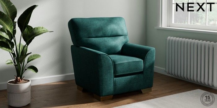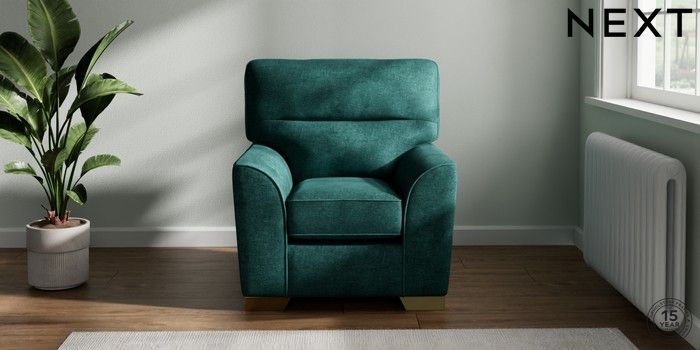 7.2.10 Stamford Highback Small Armchair Plush Chenille Dark Teal Green Square Angle - Brushed Brass | Made Click here to use our website with more accessibility support, for example screen readers