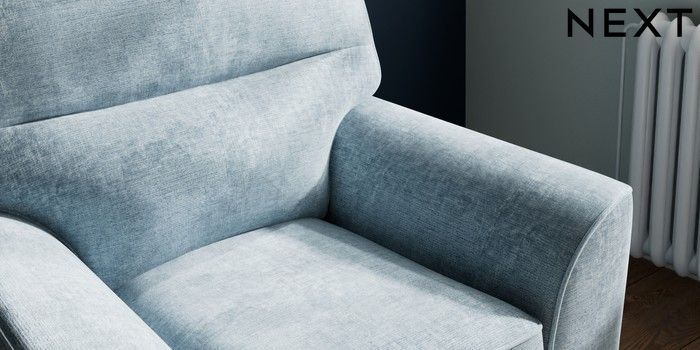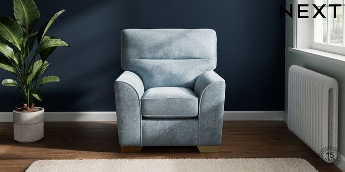 7.2.10 Stamford Highback Small Armchair Plush Chenille Light Blue Square Angle - Brushed Brass | Made Click here to use our website with more accessibility support, for example screen readers