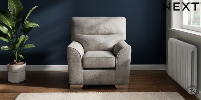 7.2.10 Stamford Highback Small Armchair Plush Chenille Light Grey Square Angle - Chrome Metal | Made Click here to use our website with more accessibility support, for example screen readers
