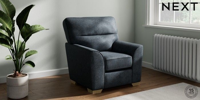7.2.10 Stamford Highback Small Armchair Plush Chenille Slate Blue Square Angle - Light | Made Click here to use our website with more accessibility support, for example screen readers