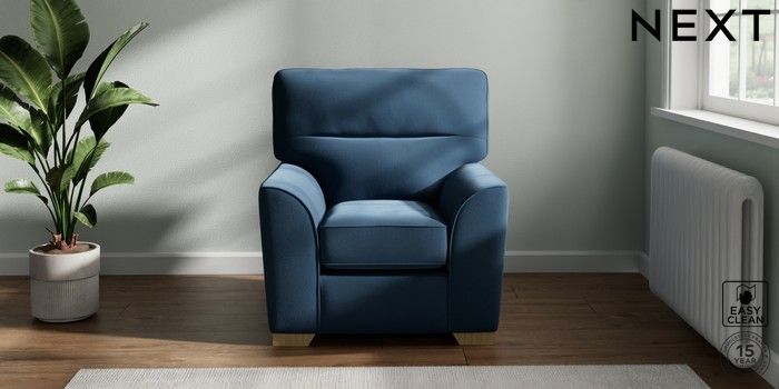 7.2.10 Stamford Highback Small Armchair Plush Velvet Easy Clean Airforce Blue Square Angle - Light | Made Click here to use our website with more accessibility support, for example screen readers