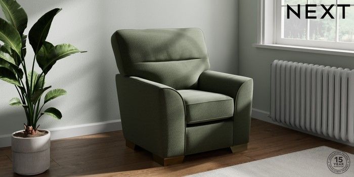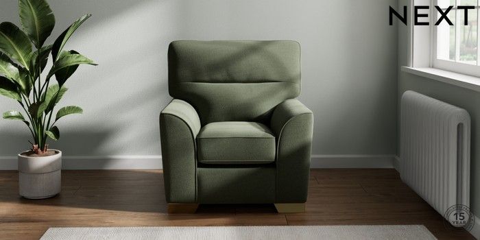 7.2.10 Stamford Highback Small Armchair Relaxed Linen Look Dark Green Square Angle - Brushed Brass | Made Click here to use our website with more accessibility support, for example screen readers