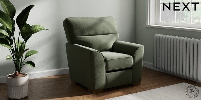 7.2.10 Stamford Highback Small Armchair Relaxed Linen Look Dark Green Square Angle - Mid | Made Click here to use our website with more accessibility support, for example screen readers