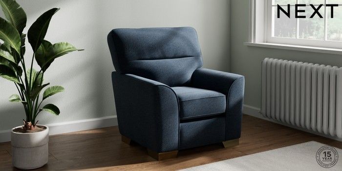7.2.10 Stamford Highback Small Armchair Ripple Chenille Dark Blue Square Angle - Brushed Brass | Made Click here to use our website with more accessibility support, for example screen readers