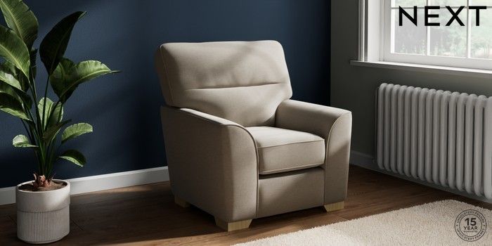 7.2.10 Stamford Highback Small Armchair Ripple Chenille Light Natural Square Angle - Light | Made Click here to use our website with more accessibility support, for example screen readers