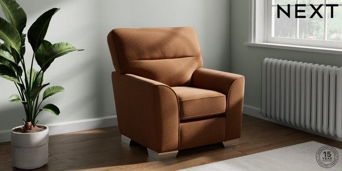 7.2.10 Stamford Highback Small Armchair Ripple Chenille Mid Rust Brown Square Angle - Chrome Metal | Made Click here to use our website with more accessibility support, for example screen readers