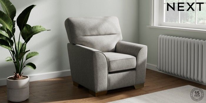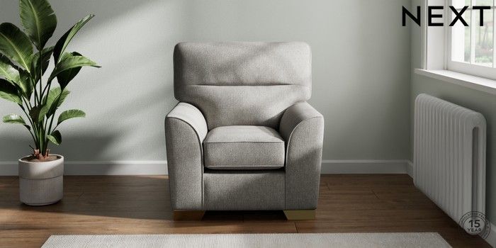 7.2.10 Stamford Highback Small Armchair Tweedy Chenille Mid Grey Square Angle - Brushed Brass | Made Click here to use our website with more accessibility support, for example screen readers