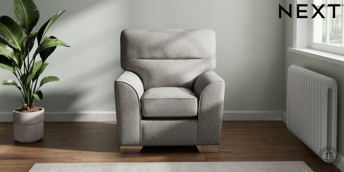 7.2.10 Stamford Highback Small Armchair Tweedy Chenille Mid Grey Square Angle - Chrome Metal | Made Click here to use our website with more accessibility support, for example screen readers
