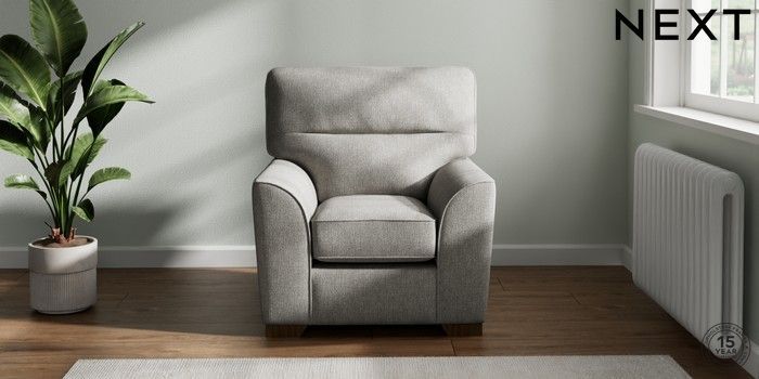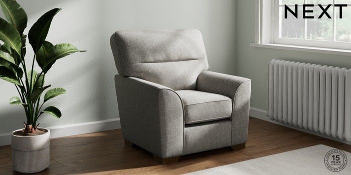 7.2.10 Stamford Highback Small Armchair Tweedy Chenille Mid Grey Square Angle - Mid | Made Click here to use our website with more accessibility support, for example screen readers