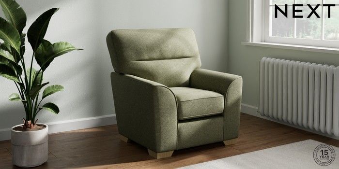 7.2.10 Stamford Highback Small Armchair Tweedy Chenille Mid Moss Green Square Angle - Light | Made Click here to use our website with more accessibility support, for example screen readers