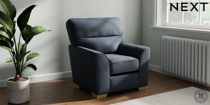 7.2.10 Stamford Highback Small Armchair Tweedy Chenille Navy Blue Square Angle - Light | Made Click here to use our website with more accessibility support, for example screen readers