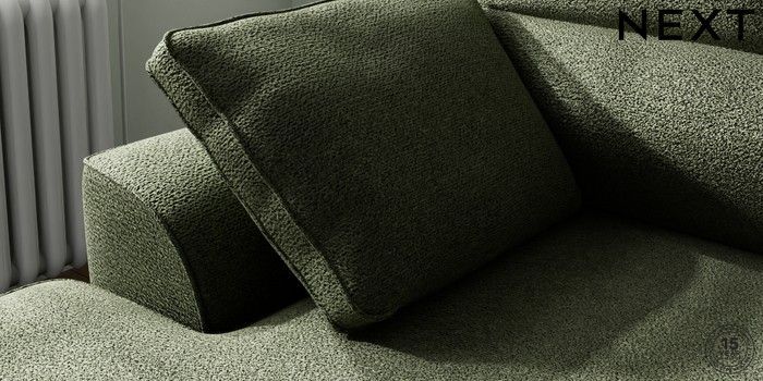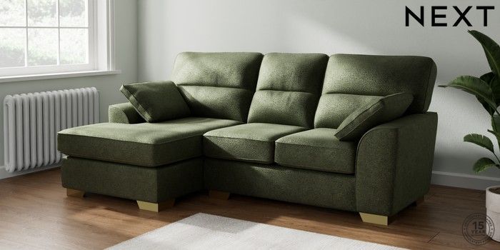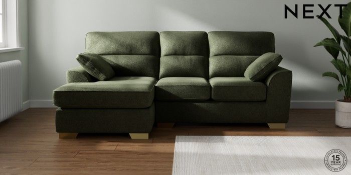 7.2.10 Stamford Highback Small Sofa Chaise - Left Hand Boucle Chenille Dark Moss Green Large Square Angle - Brushed Brass | Made Click here to use our website with more accessibility support, for example screen readers