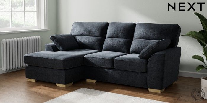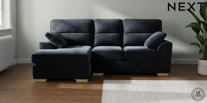 7.2.10 Stamford Highback Small Sofa Chaise - Left Hand Boucle Chenille Dark Slate Blue Large Square Angle - Light | Made Click here to use our website with more accessibility support, for example screen readers