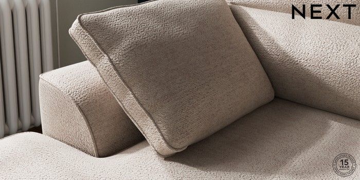 7.2.10 Stamford Highback Small Sofa Chaise - Left Hand Boucle Chenille Light Natural Large Square Angle - Gunmetal | Made Click here to use our website with more accessibility support, for example screen readers