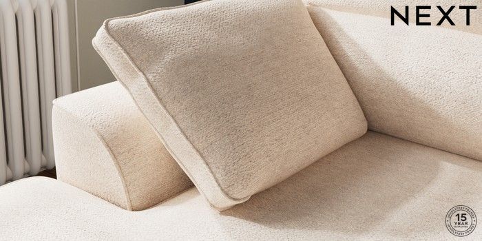 7.2.10 Stamford Highback Small Sofa Chaise - Left Hand Boucle Chenille Oyster Large Square Angle - Chrome Metal | Made Click here to use our website with more accessibility support, for example screen readers