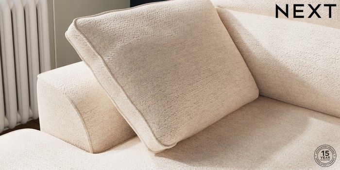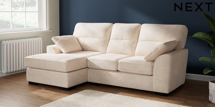 7.2.10 Stamford Highback Small Sofa Chaise - Left Hand Boucle Chenille Oyster Large Square Angle - Dark | Made Click here to use our website with more accessibility support, for example screen readers