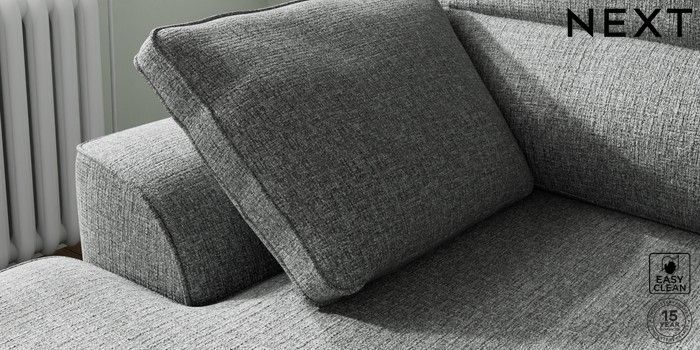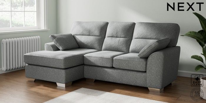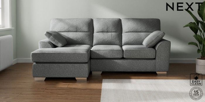 7.2.10 Stamford Highback Small Sofa Chaise - Left Hand Chunky Boucle Easy Clean Mid Grey Large Square Angle - Chrome Metal | Made Click here to use our website with more accessibility support, for example screen readers