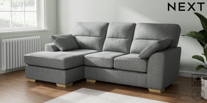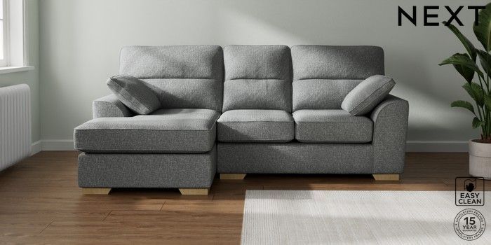 7.2.10 Stamford Highback Small Sofa Chaise - Left Hand Chunky Boucle Easy Clean Mid Grey Large Square Angle - Light | Made Click here to use our website with more accessibility support, for example screen readers