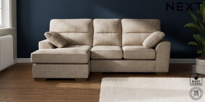7.2.10 Stamford Highback Small Sofa Chaise - Left Hand Chunky Boucle Easy Clean Mid Natural Large Square Angle - Mid | Made Click here to use our website with more accessibility support, for example screen readers