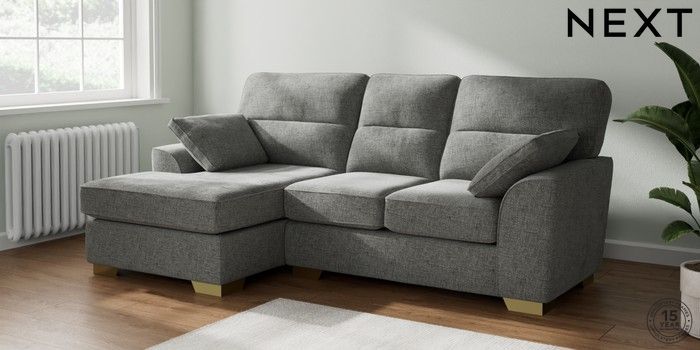 7.2.10 Stamford Highback Small Sofa Chaise - Left Hand Chunky Chenille Dark Grey Large Square Angle - Brushed Brass | Made Click here to use our website with more accessibility support, for example screen readers