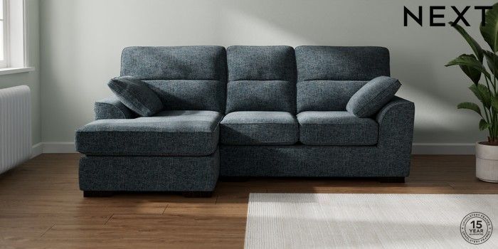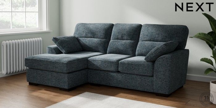 7.2.10 Stamford Highback Small Sofa Chaise - Left Hand Chunky Chenille Dark Navy Blue Large Square Angle - Dark | Made Click here to use our website with more accessibility support, for example screen readers