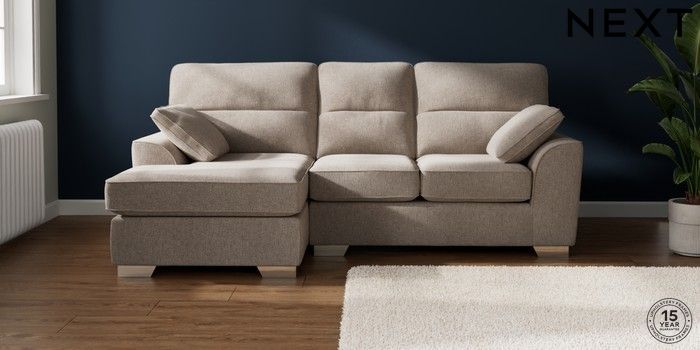 7.2.10 Stamford Highback Small Sofa Chaise - Left Hand Chunky Chenille Light Dove Large Square Angle - Chrome Metal | Made Click here to use our website with more accessibility support, for example screen readers