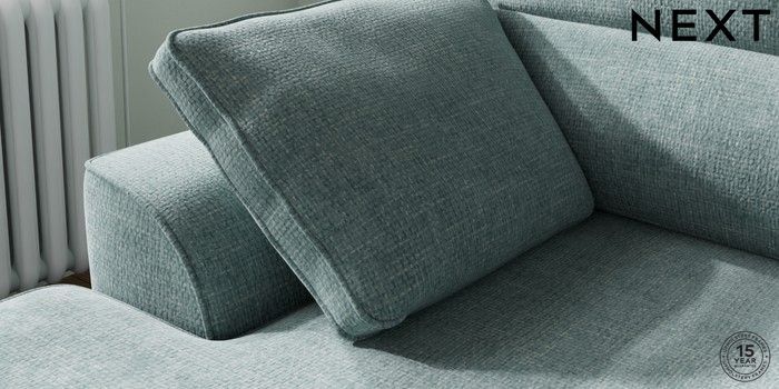 7.2.10 Stamford Highback Small Sofa Chaise - Left Hand Chunky Chenille Light Teal Green Large Square Angle - Brushed Brass | Made Click here to use our website with more accessibility support, for example screen readers