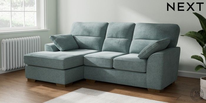 7.2.10 Stamford Highback Small Sofa Chaise - Left Hand Chunky Chenille Light Teal Green Large Square Angle - Mid | Made Click here to use our website with more accessibility support, for example screen readers
