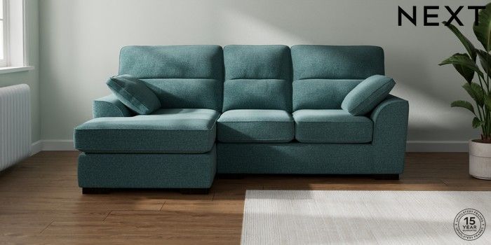 7.2.10 Stamford Highback Small Sofa Chaise - Left Hand Chunky Chenille Mid Teal Green Large Square Angle - Dark | Made Click here to use our website with more accessibility support, for example screen readers