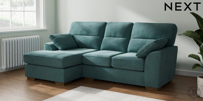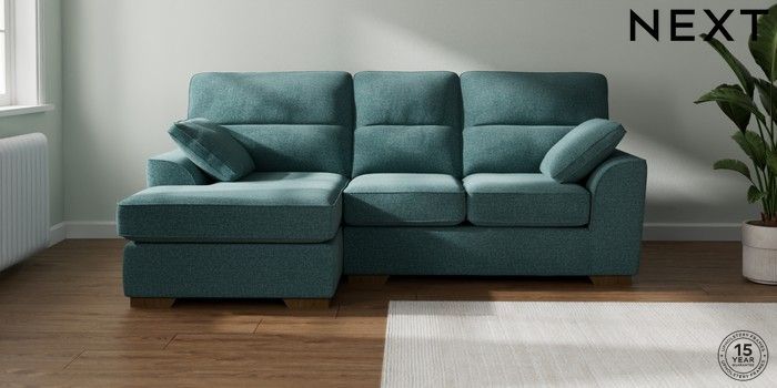 7.2.10 Stamford Highback Small Sofa Chaise - Left Hand Chunky Chenille Mid Teal Green Large Square Angle - Mid | Made Click here to use our website with more accessibility support, for example screen readers