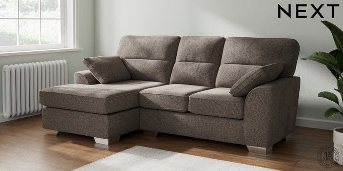 7.2.10 Stamford Highback Small Sofa Chaise - Left Hand Chunky Chenille Mink Brown Large Square Angle - Chrome Metal | Made Click here to use our website with more accessibility support, for example screen readers