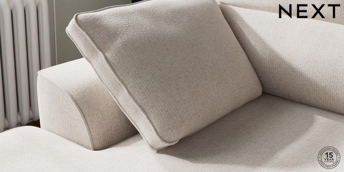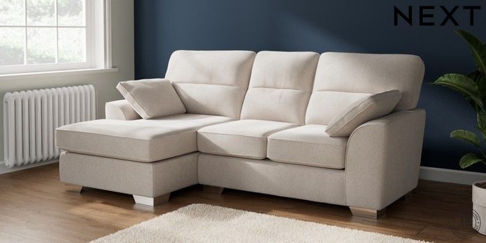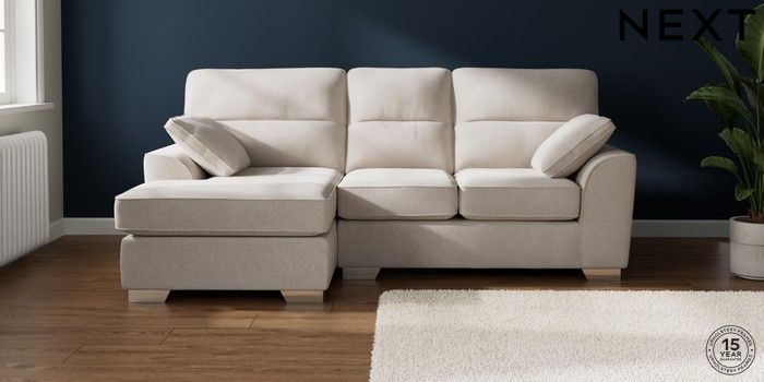 7.2.10 Stamford Highback Small Sofa Chaise - Left Hand Chunky Chenille Oyster Large Square Angle - Chrome Metal | Made Click here to use our website with more accessibility support, for example screen readers