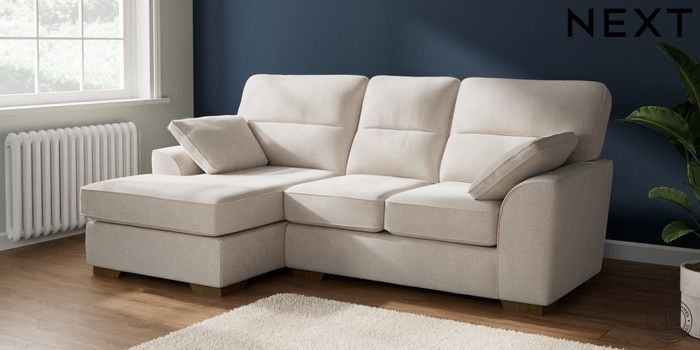 7.2.10 Stamford Highback Small Sofa Chaise - Left Hand Chunky Chenille Oyster Large Square Angle - Mid | Made Click here to use our website with more accessibility support, for example screen readers