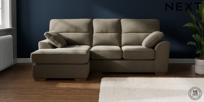 7.2.10 Stamford Highback Small Sofa Chaise - Left Hand Chunky Marl Light Olive Green Large Square Angle - Mid | Made Click here to use our website with more accessibility support, for example screen readers