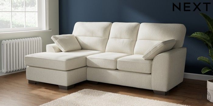 7.2.10 Stamford Highback Small Sofa Chaise - Left Hand Chunky Texture Oyster Large Square Angle - Gunmetal | Made Click here to use our website with more accessibility support, for example screen readers