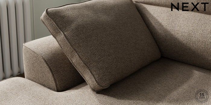 7.2.10 Stamford Highback Small Sofa Chaise - Left Hand Chunky Weave Dark Natural Large Square Angle - Chrome Metal | Made Click here to use our website with more accessibility support, for example screen readers
