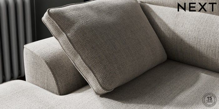 7.2.10 Stamford Highback Small Sofa Chaise - Left Hand Chunky Weave Dove Grey Large Square Angle - Brushed Brass | Made Click here to use our website with more accessibility support, for example screen readers