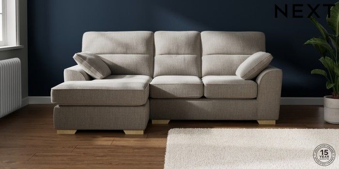 7.2.10 Stamford Highback Small Sofa Chaise - Left Hand Chunky Weave Dove Grey Large Square Angle - Light | Made Click here to use our website with more accessibility support, for example screen readers