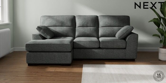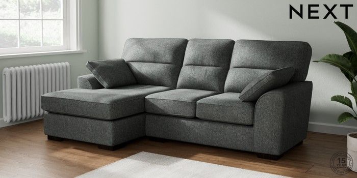 7.2.10 Stamford Highback Small Sofa Chaise - Left Hand Cotswold Chenille Dark Grey Large Square Angle - Dark | Made Click here to use our website with more accessibility support, for example screen readers