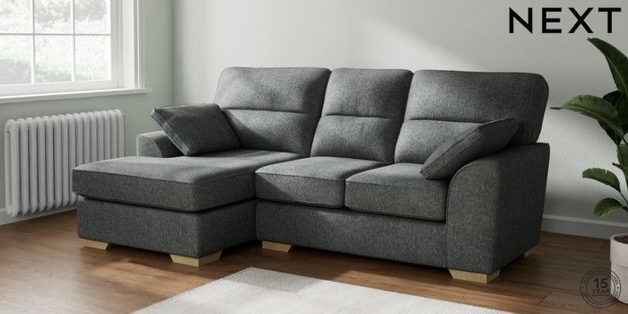 7.2.10 Stamford Highback Small Sofa Chaise - Left Hand Cotswold Chenille Dark Grey Large Square Angle - Light | Made Click here to use our website with more accessibility support, for example screen readers