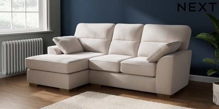 7.2.10 Stamford Highback Small Sofa Chaise - Left Hand Cotswold Chenille Oyster Large Square Angle - Mid | Made Click here to use our website with more accessibility support, for example screen readers