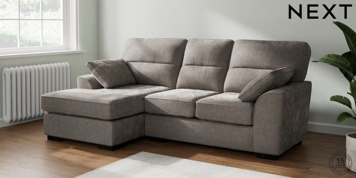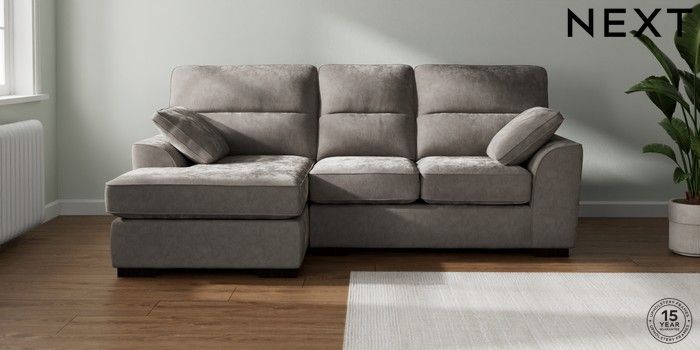 7.2.10 Stamford Highback Small Sofa Chaise - Left Hand Distressed Velour French Grey Large Square Angle - Dark | Made Click here to use our website with more accessibility support, for example screen readers