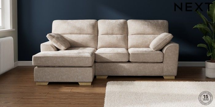 7.2.10 Stamford Highback Small Sofa Chaise - Left Hand Distressed Velour Mid Natural Large Square Angle - Light | Made Click here to use our website with more accessibility support, for example screen readers