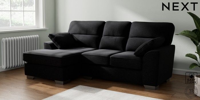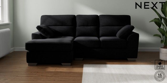 7.2.10 Stamford Highback Small Sofa Chaise - Left Hand Fine Chenille Easy Clean Black Large Square Angle - Gunmetal | Made Click here to use our website with more accessibility support, for example screen readers