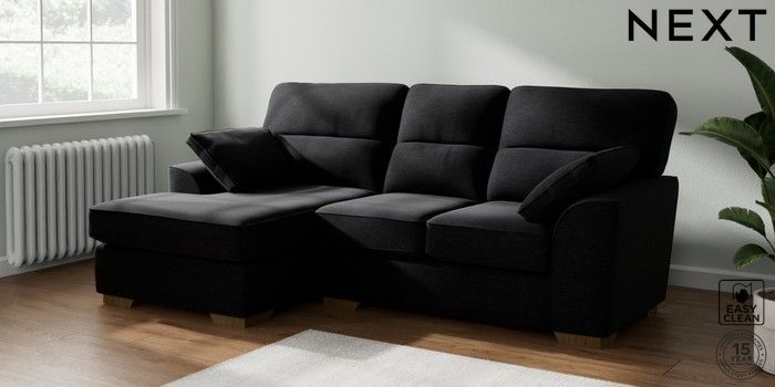 7.2.10 Stamford Highback Small Sofa Chaise - Left Hand Fine Chenille Easy Clean Black Large Square Angle - Mid | Made Click here to use our website with more accessibility support, for example screen readers