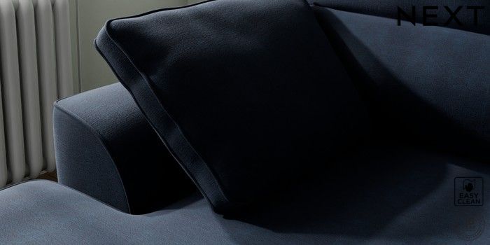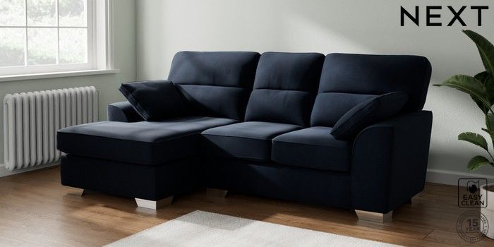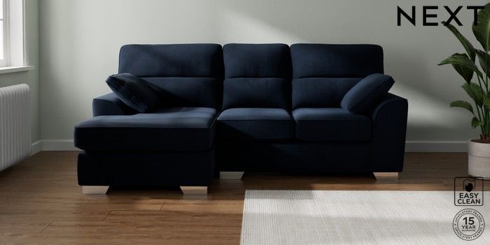 7.2.10 Stamford Highback Small Sofa Chaise - Left Hand Fine Chenille Easy Clean Dark Navy Blue Large Square Angle - Chrome Metal | Made Click here to use our website with more accessibility support, for example screen readers