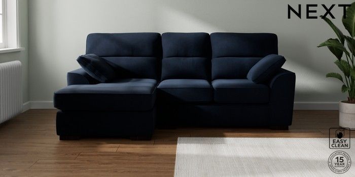 7.2.10 Stamford Highback Small Sofa Chaise - Left Hand Fine Chenille Easy Clean Dark Navy Blue Large Square Angle - Dark | Made Click here to use our website with more accessibility support, for example screen readers