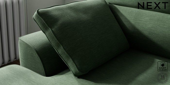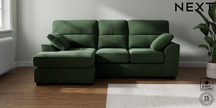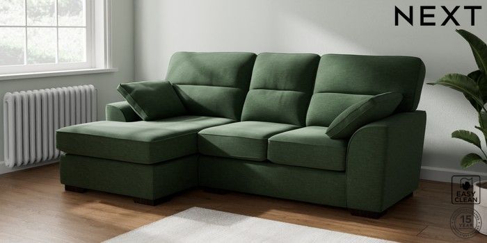 7.2.10 Stamford Highback Small Sofa Chaise - Left Hand Fine Chenille Easy Clean Mid Khaki Green Large Square Angle - Dark | Made Click here to use our website with more accessibility support, for example screen readers