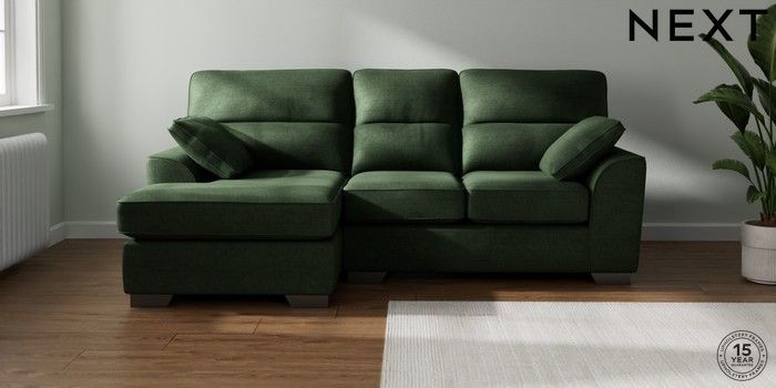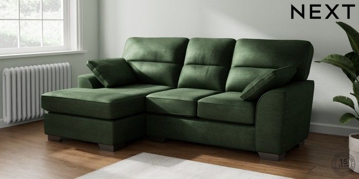 7.2.10 Stamford Highback Small Sofa Chaise - Left Hand Luxe Chenille Dark Green Large Square Angle - Gunmetal | Made Click here to use our website with more accessibility support, for example screen readers
