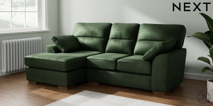 7.2.10 Stamford Highback Small Sofa Chaise - Left Hand Luxe Chenille Dark Green Large Square Angle - Mid | Made Click here to use our website with more accessibility support, for example screen readers